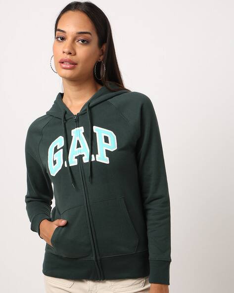 - Women's green gap logo zip hoodie in fleece sale online