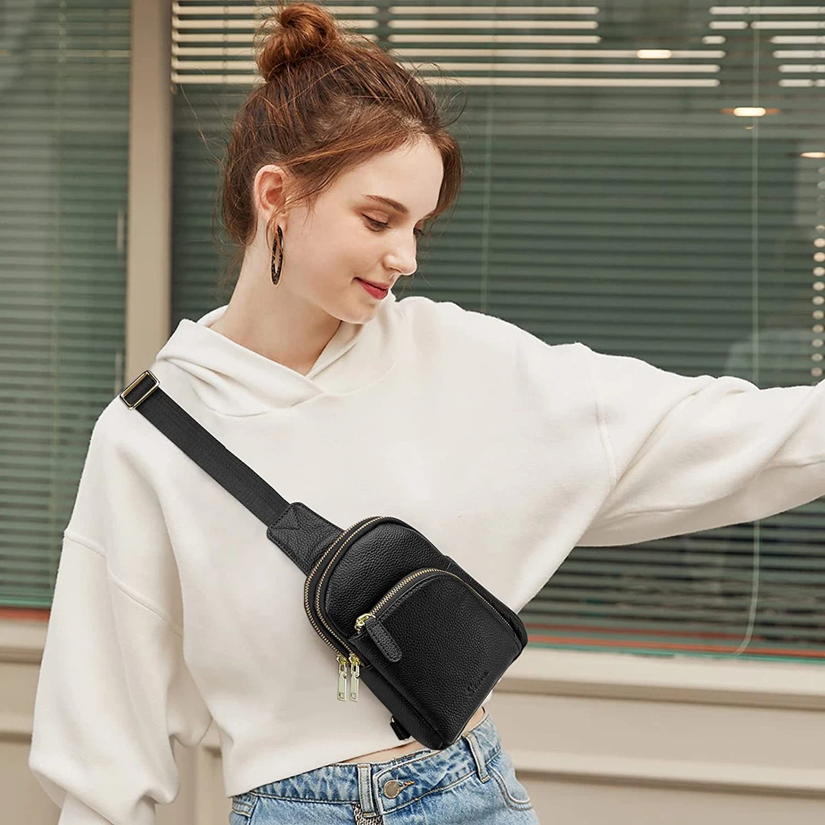 - Leather rfid crossbody bag shop