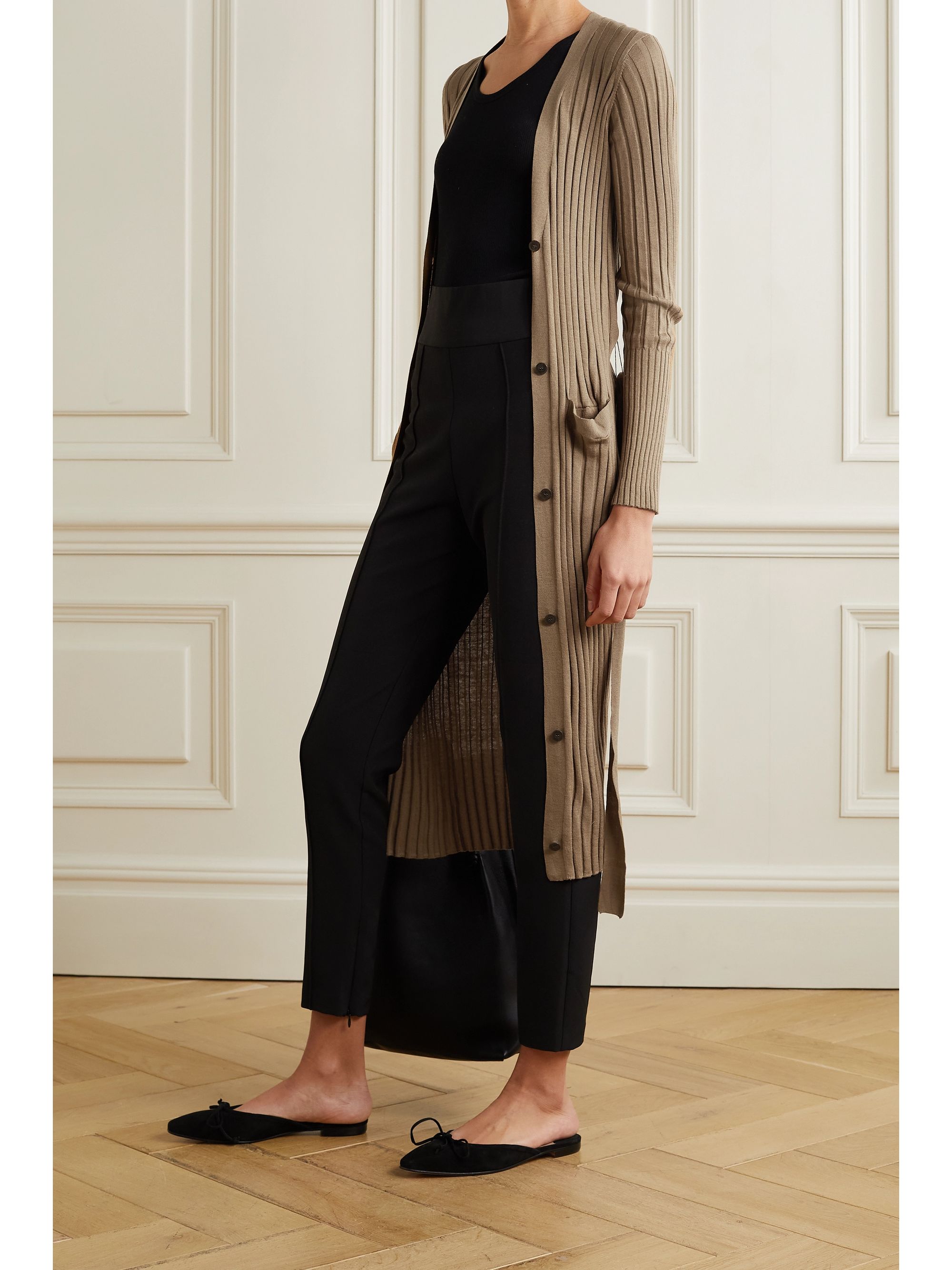 Tan ribbed cardigan clearance, Tan Belted ribbed silk and cotton-blend clearance