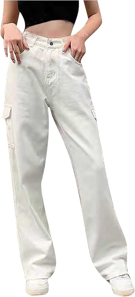- Womens white baggy jeans