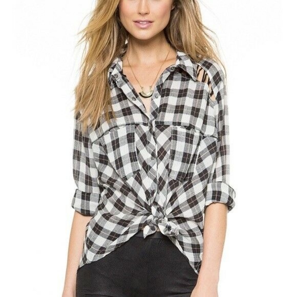 Black and white check blouse clearance, Black White Plaid Check Blouse Size Xs clearance