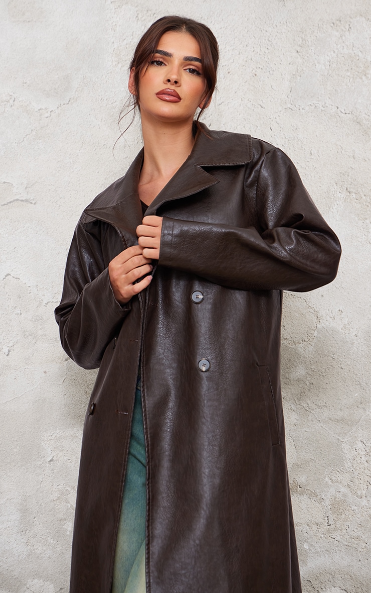 Chocolate leather coat clearance