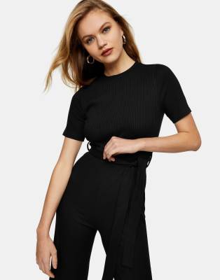 Black t shirt jumpsuit clearance, Topshop ribbed T-shirt jumpsuit in clearance