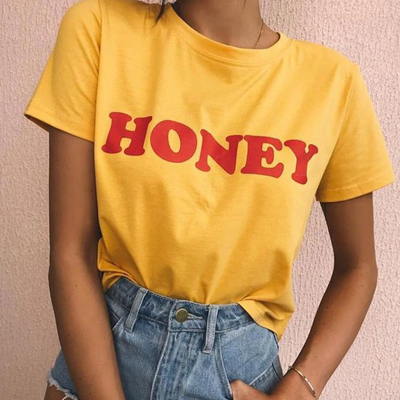Shirt honey clearance, Honey Letter Print T-shirt Casual clearance
