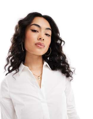 - Fitted white long sleeve shirt shop