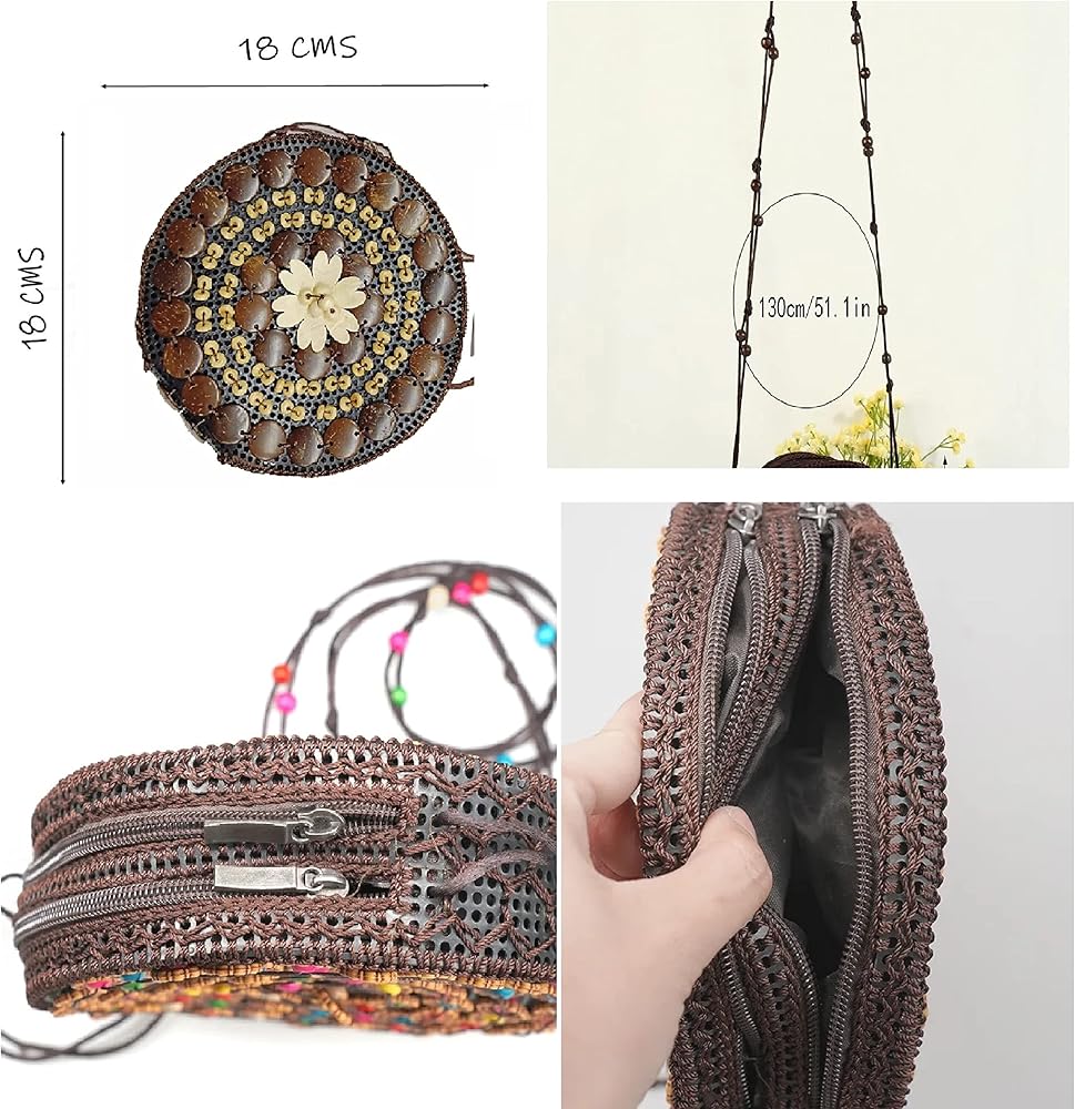Coconut shell sling bag clearance, Handcrafted Coconut Shell Beaded Sling bag for Women | Crossbody Long Strap Purse | Handmade Natural clearance