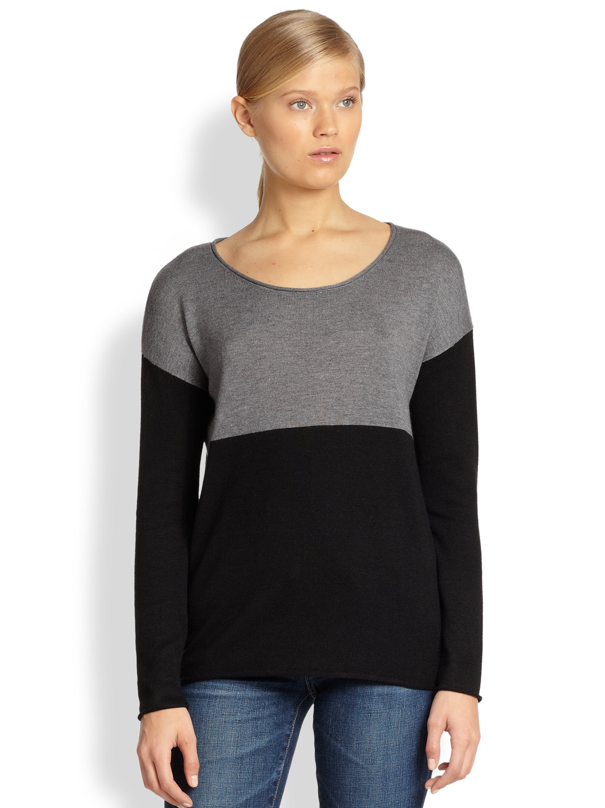 - Patched slash neck color block sweater outlet