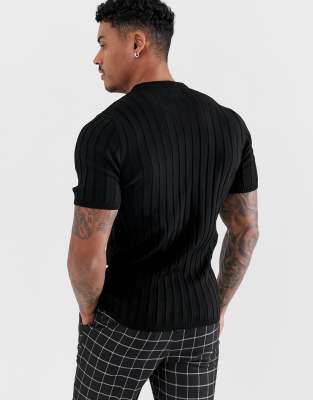 Black knit t shirt clearance
