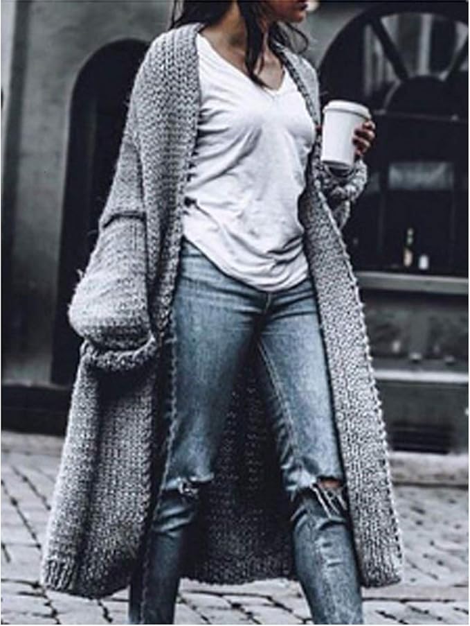 - Long grey chunky knit cardigan free shipping