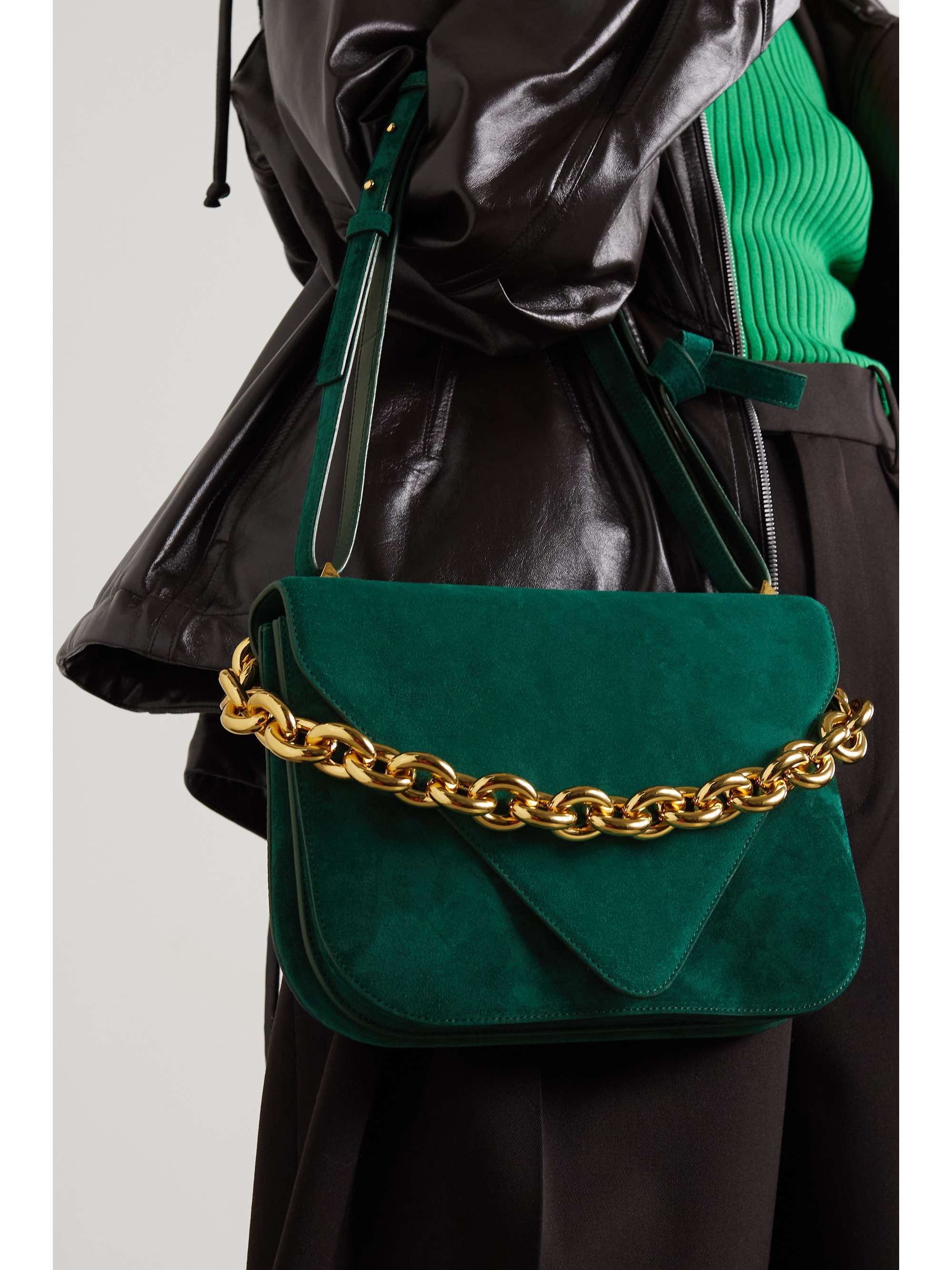 - Green suede shoulder bag shop
