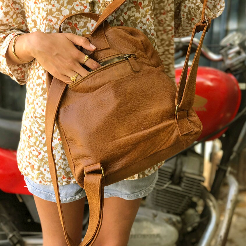 - Small soft leather backpack