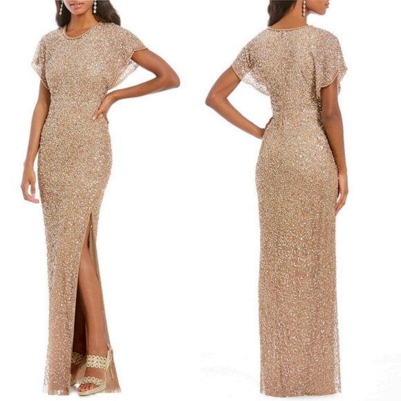 Adrianna papell flutter sleeve dress clearance, Floral Beaded Gown With Sheer Flutter clearance