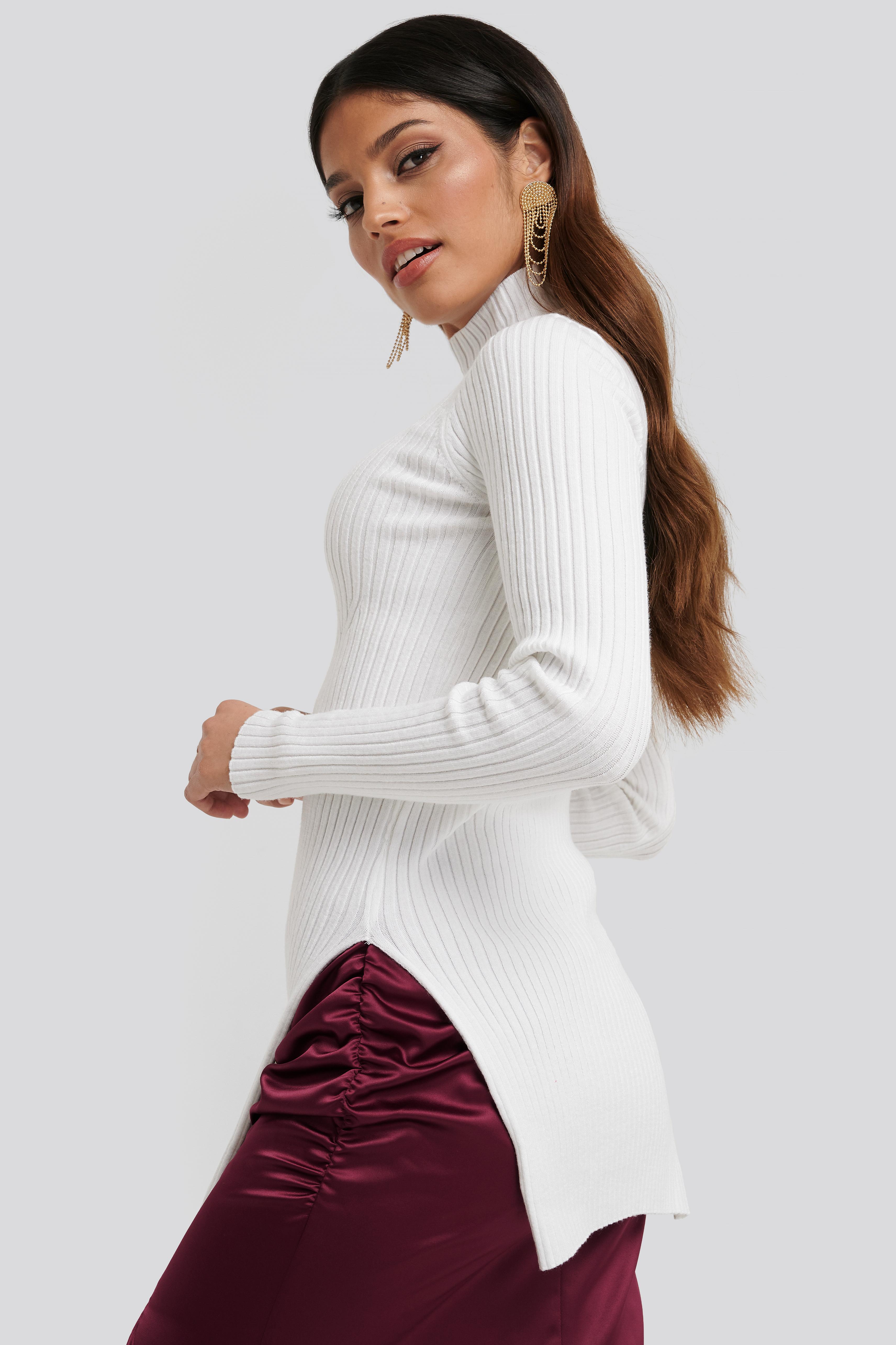 - Side split ribbed sweater shop