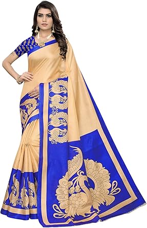 Amazon prime saree sale clearance, Peacock Printed Sari Bhagalpuri Silk clearance