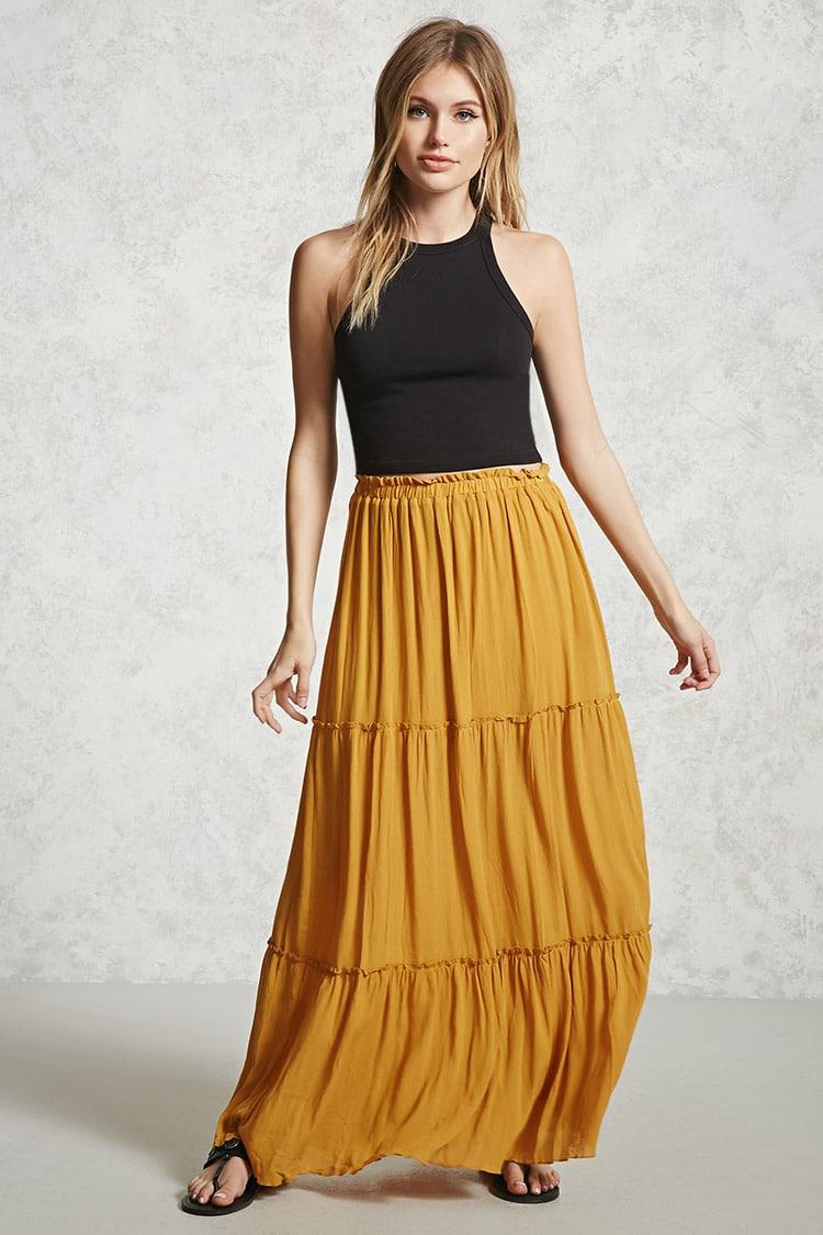 - Mustard tiered maxi skirt outlet