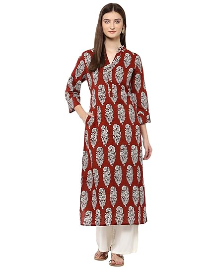 Amazon online shopping kurtis with palazzo clearance, Buy Jaipur Kurti Brown Floral Print clearance
