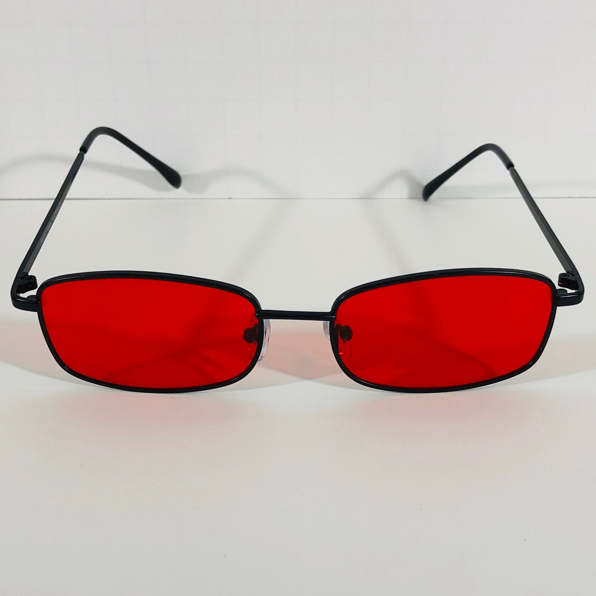 - Red lens rectangle sunglasses clearance