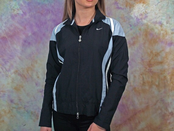 Nike vintage jacket women clearance, 90s Vintage Nike Women's Black Blue clearance