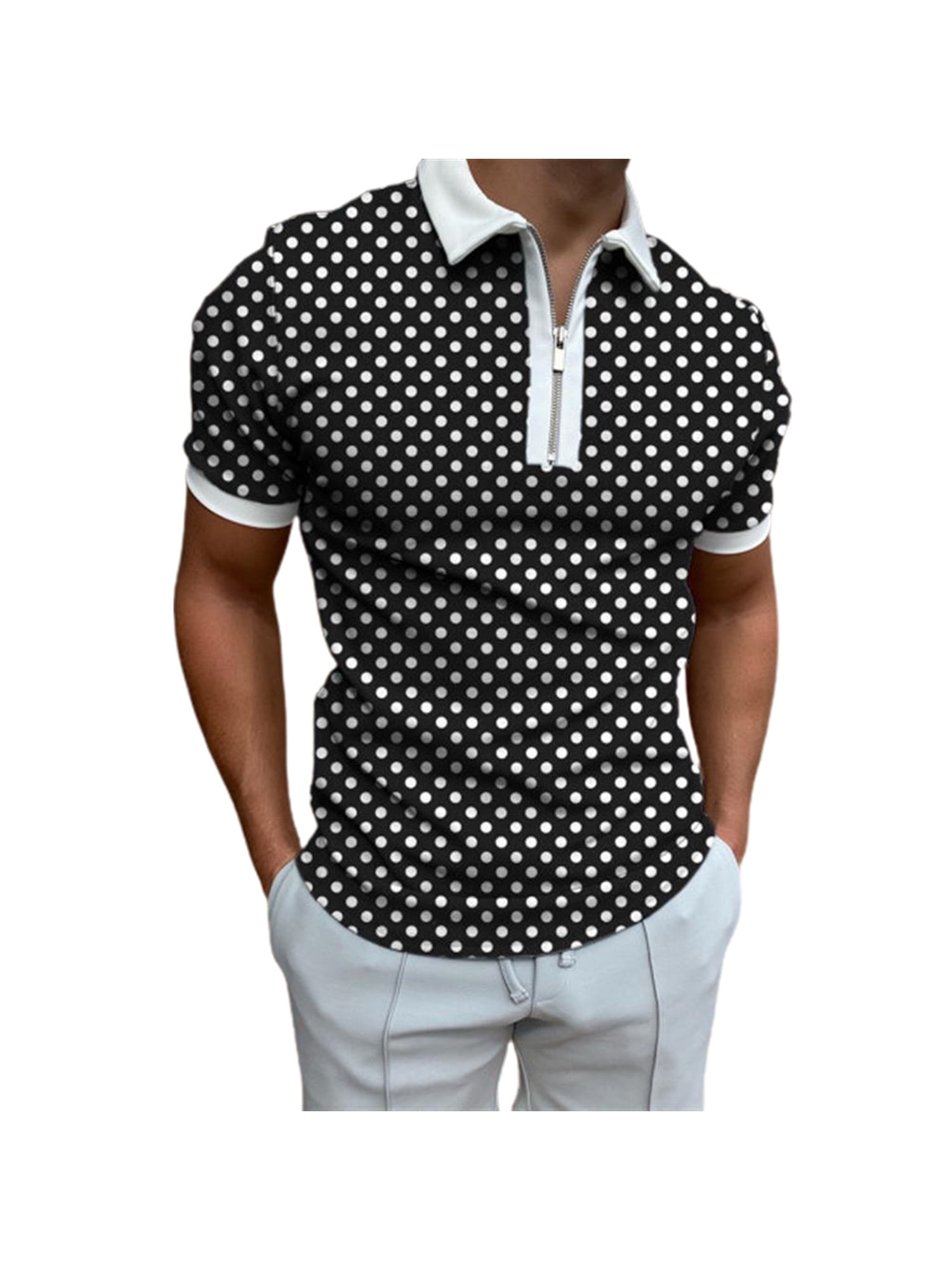 Polka dot golf shirt men's clearance, Mens Zip Neck Golf Shirt Summer Polka clearance