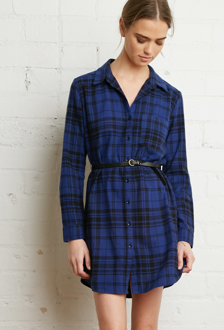 - Blue plaid shirt dress sale online