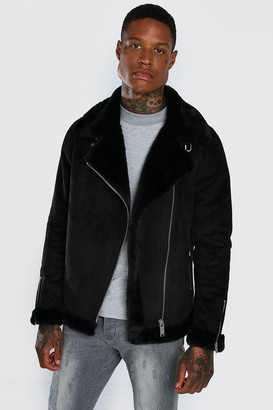 Faux fur lined suede aviator jacket clearance, Mens Brown Faux Fur Lined Suede Aviator Jacket, Brown from Boohooman on 21 Buttons clearance