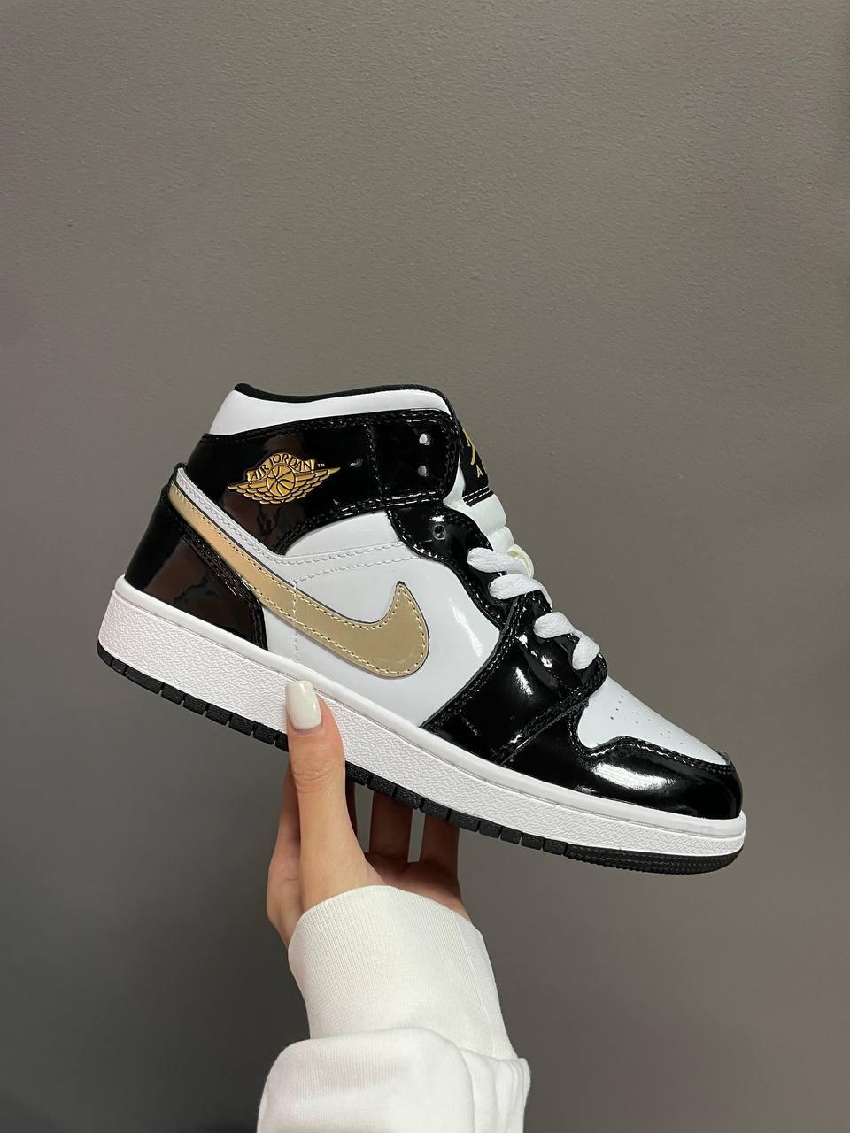 Jordan 1 mid patent black white gold footlocker clearance