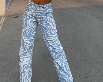 Zebra denim jeans clearance, Blue zebra print relaxed fit jeans clearance
