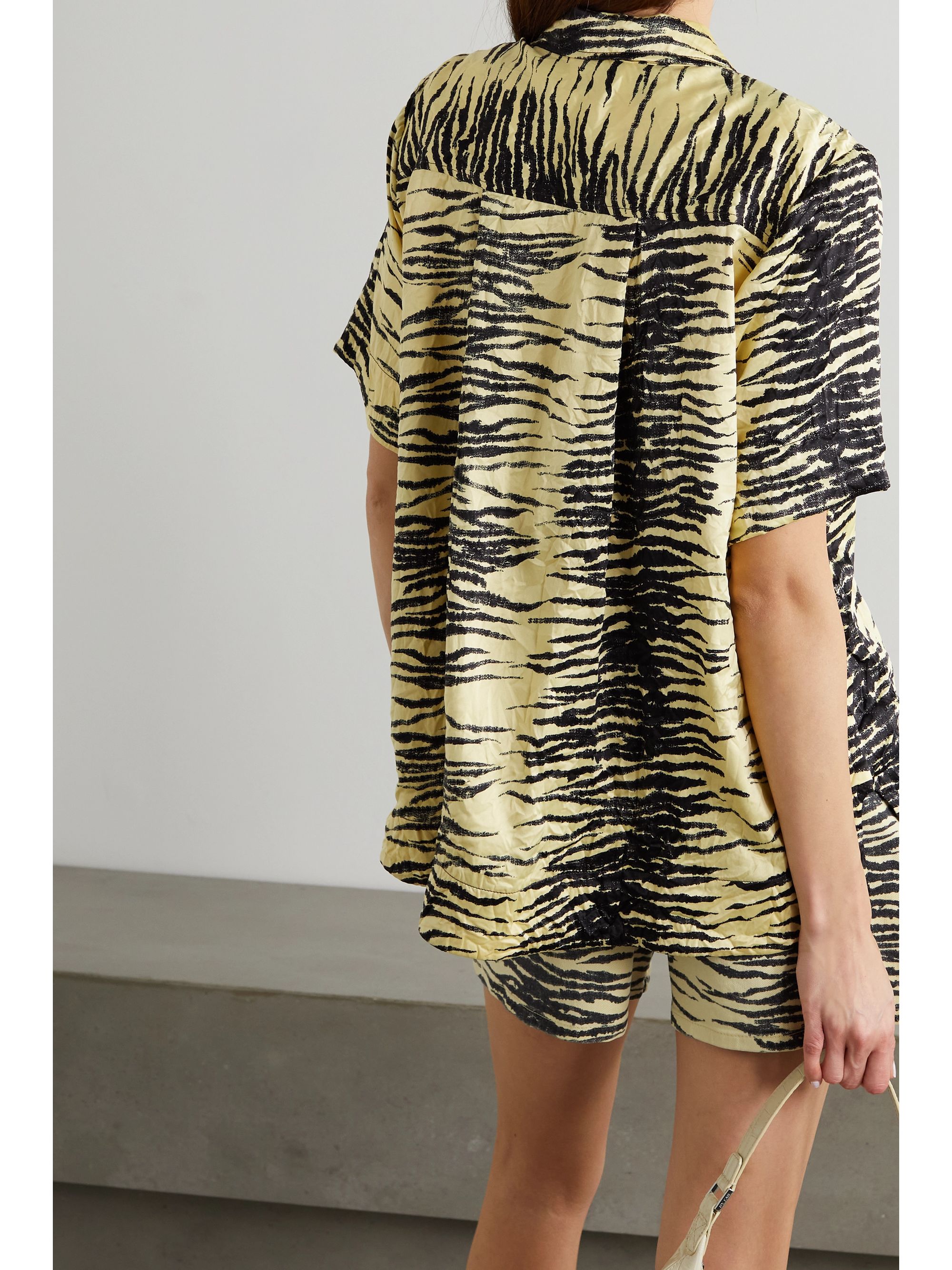 Ganni tiger shirt clearance, Ganni Tiger-print Crinkled Stretch clearance