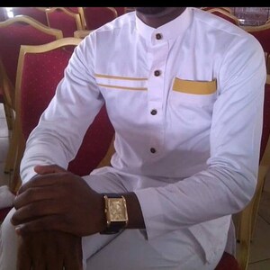 White and gold dashiki clearance, Gold Trims Dashiki suit African clearance