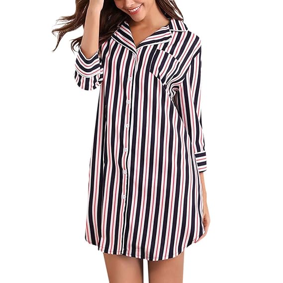 Boyfriend shirt pajama clearance, Shirt Dress Striped Button clearance