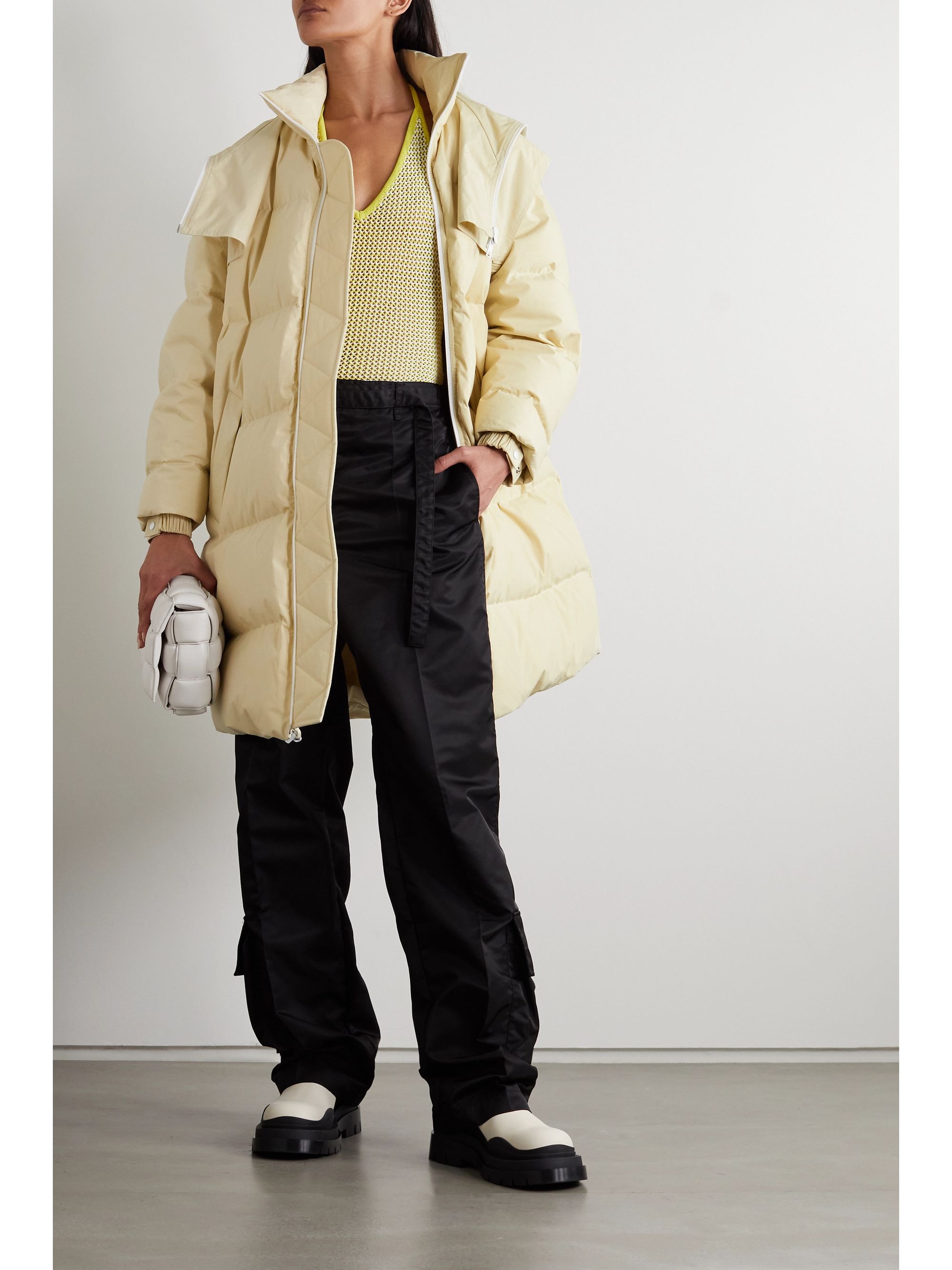 Bottega veneta down coat clearance, Beige Oversized hooded quilted cotton clearance