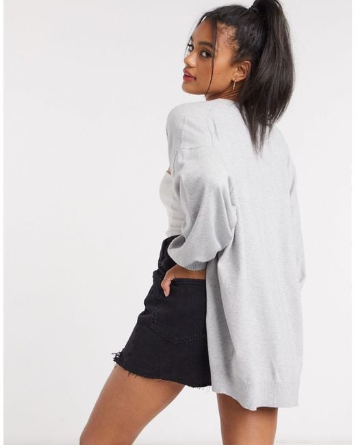 Grey longline knit cardigan clearance