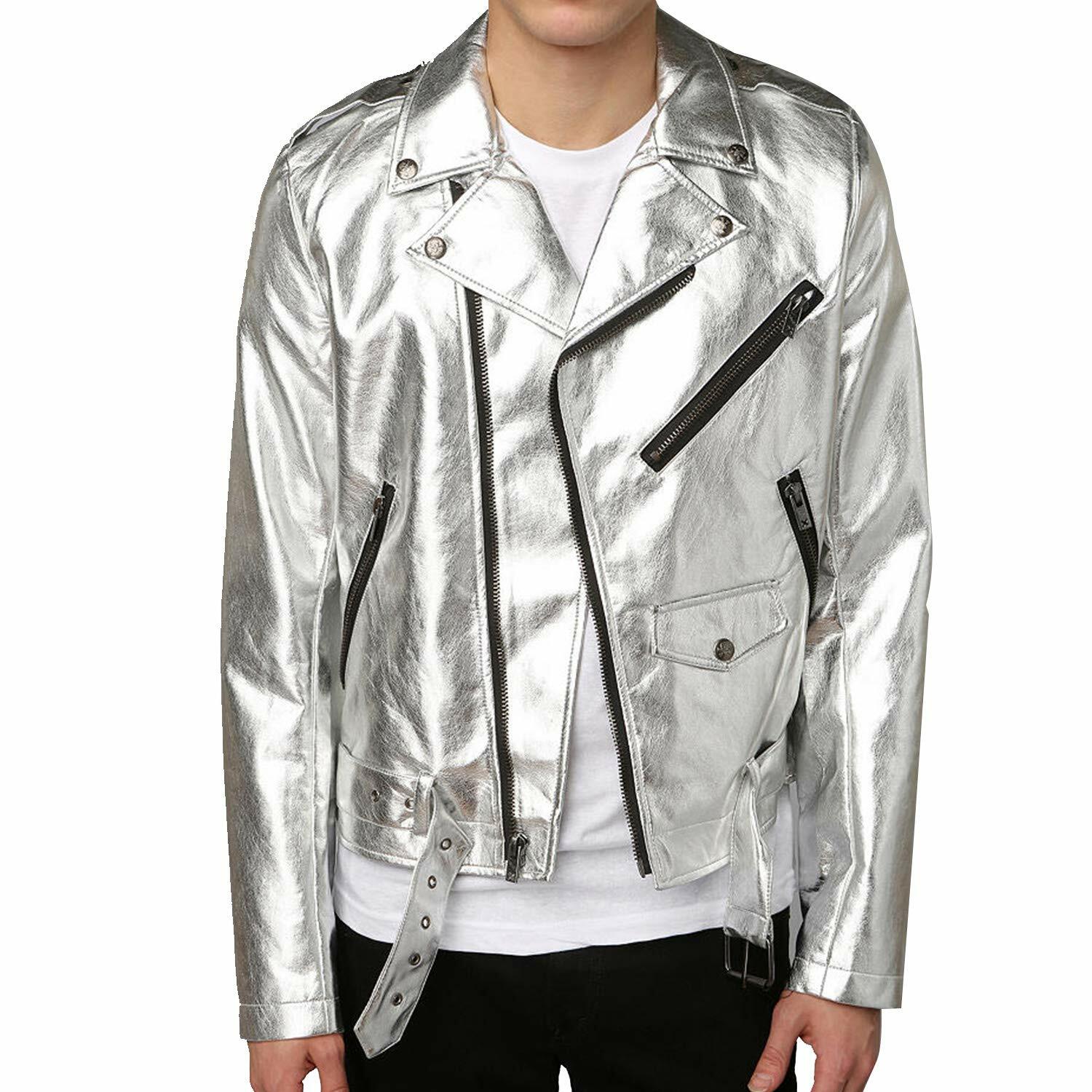 Silver leather motorcycle jacket clearance, Men's Silver Metallic Foil Solid Casual Tailored Motorcycle Biker Leather Jacket, Men's Silver Biker Jacket, Men's Silver Leather Jacket - Etsy clearance