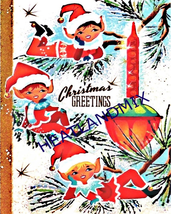 Vintage elf christmas lights clearance, Vintage Retro Pixie Elves Bubble Light Christmas Digital - Etsy UK clearance