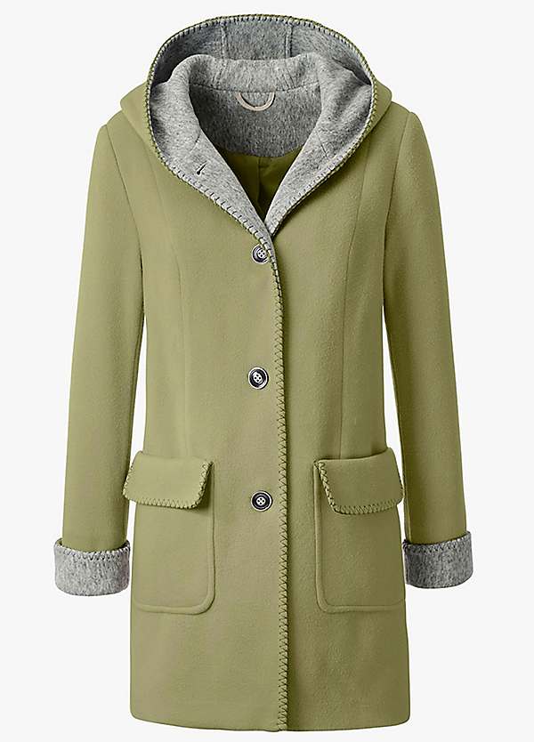 Wool look coat with hood clearance