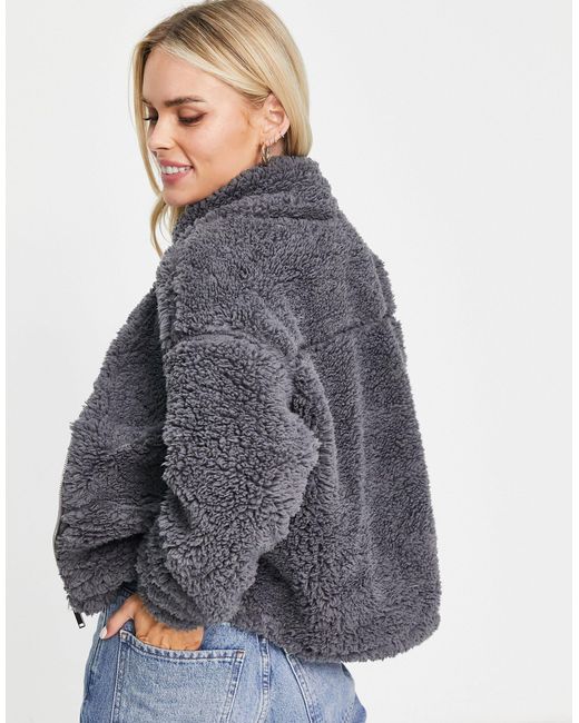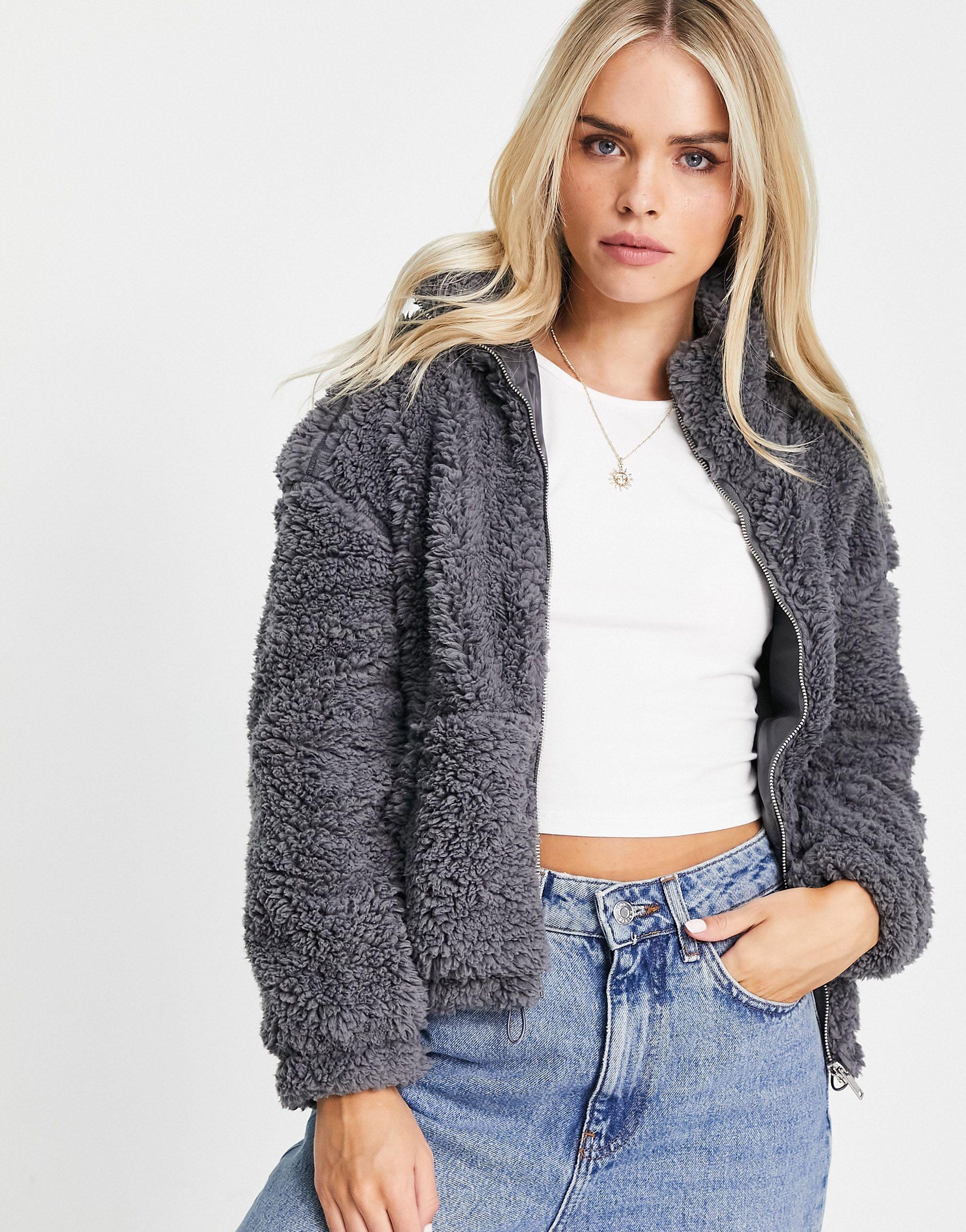 Teddy funnel neck jacket clearance, New Look Teddy Borg Funnel Neck Jacket in Grey | Lyst UK clearance