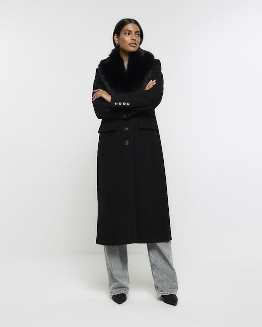 Longline coat with faux fur collar clearance, River Island Faux Fur Collar Longline Coat in Black | Lyst clearance