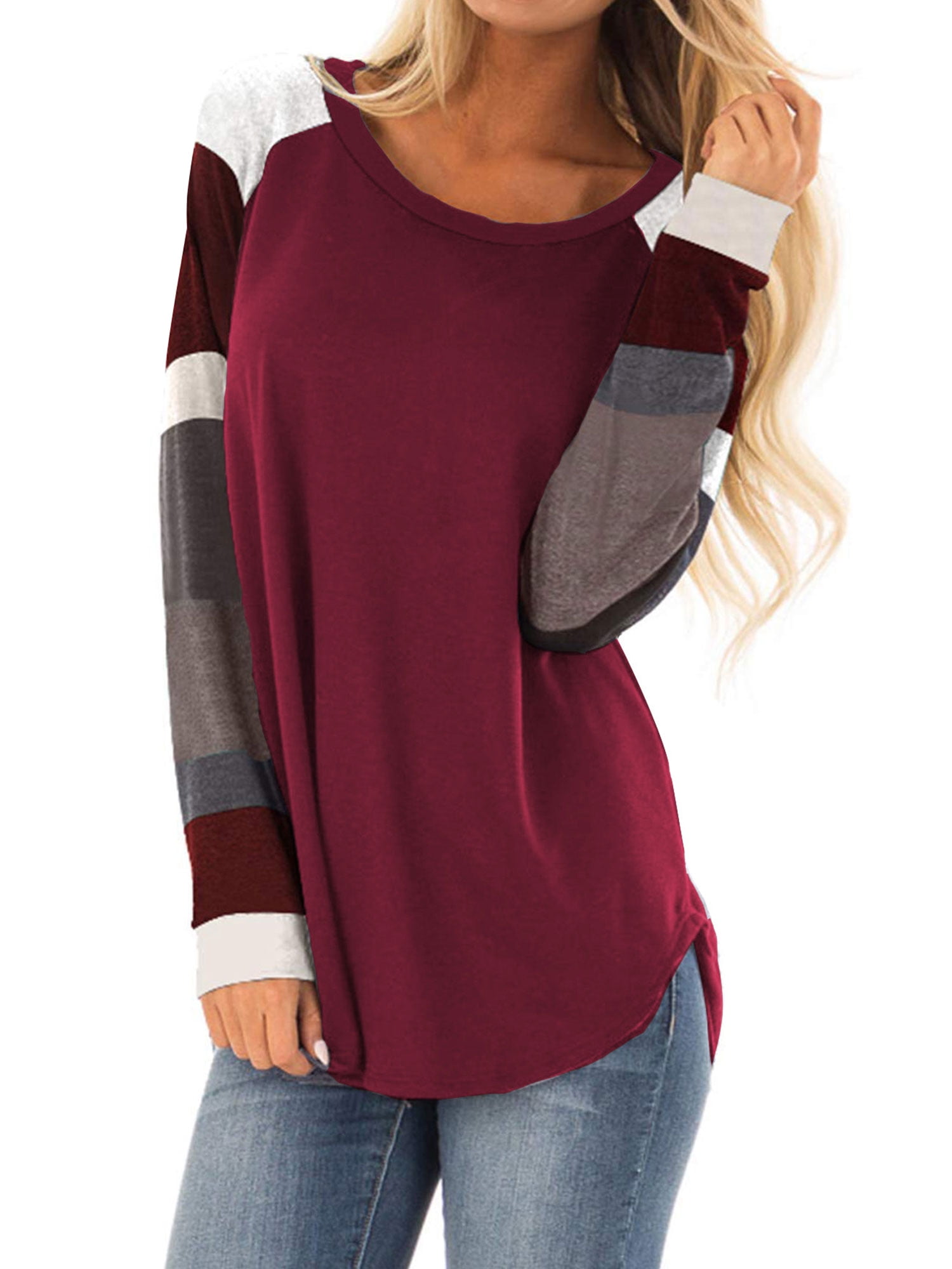 - Color block long sleeve shirt women's free shipping