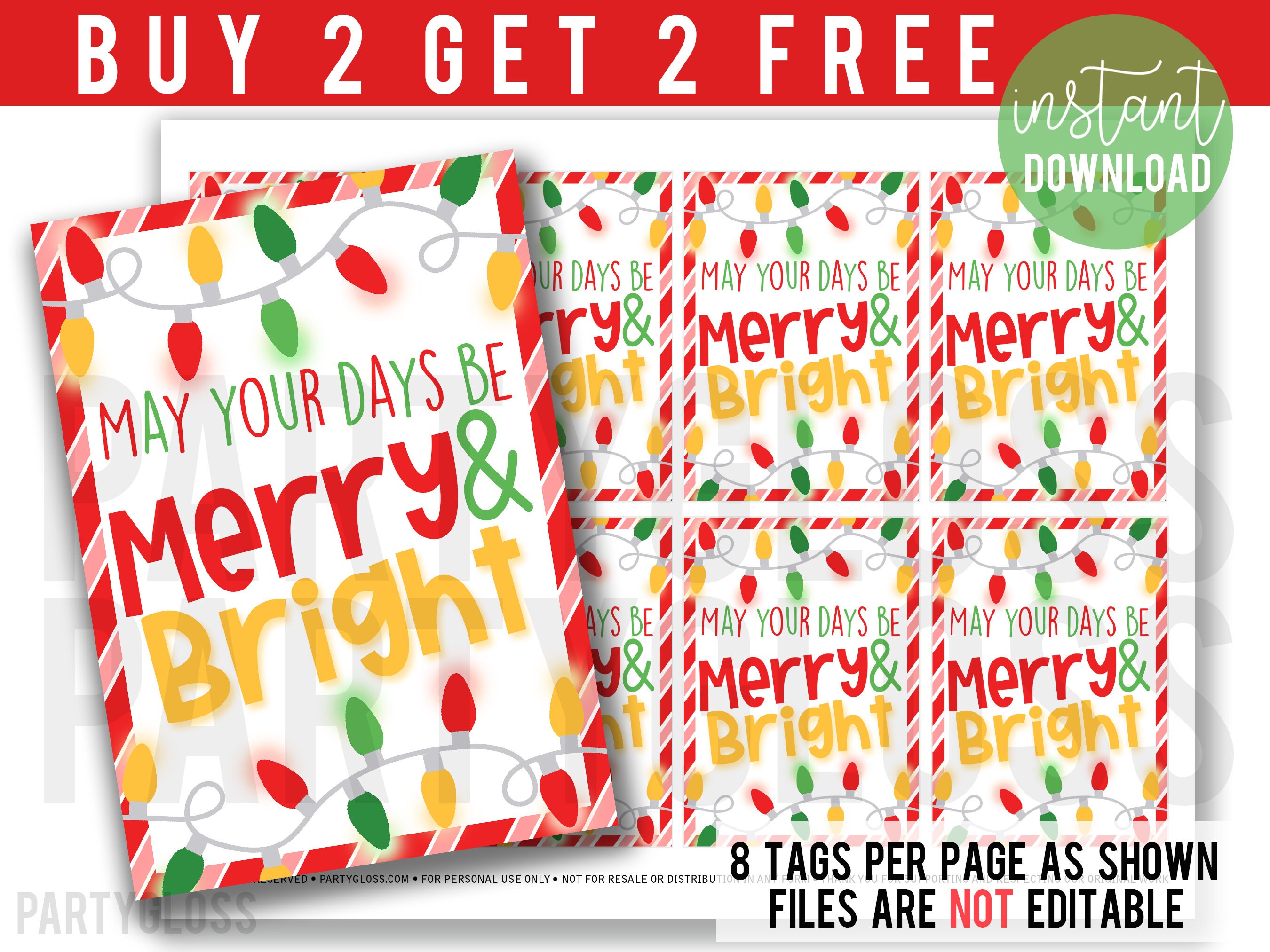 - Merry and bright christmas tags sale