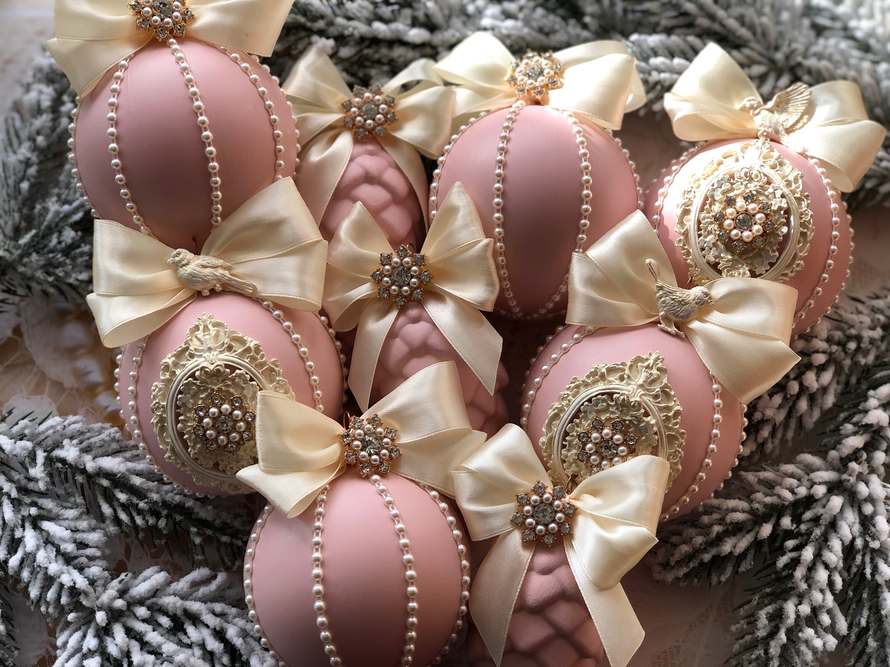 - Silver and pink christmas ornaments sale