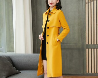 Yellow long jacket clearance, Mustard Yellow Trench Coat Womens Cotton Trench Coat Belted - Etsy Denmark clearance