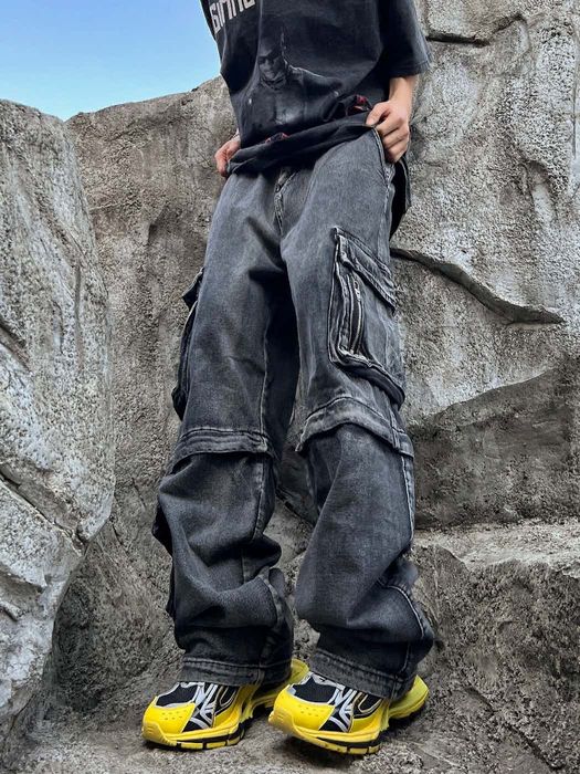 - Washed vintage baggy cargo jeans clearance