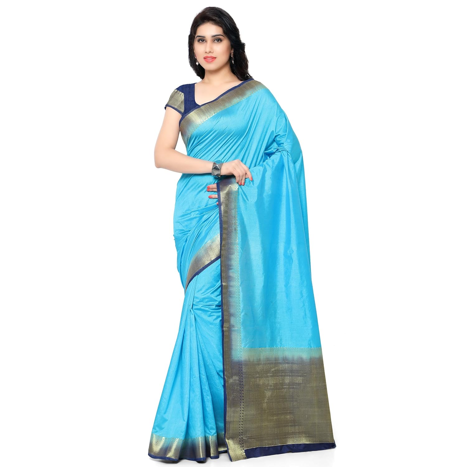 - Sky blue saree with navy blue blouse free shipping