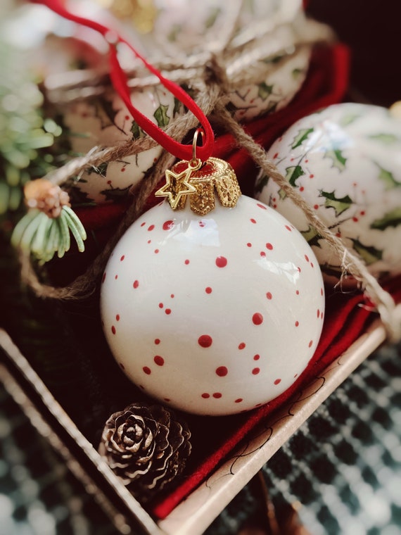 Porcelain christmas ball ornaments clearance, Porcelain Christmas Tree Ball Dots Dotted Christmas Tree Decorations Christmas Tree Decorations Christmas Ball Red Green Ceramic Handmade - Etsy clearance