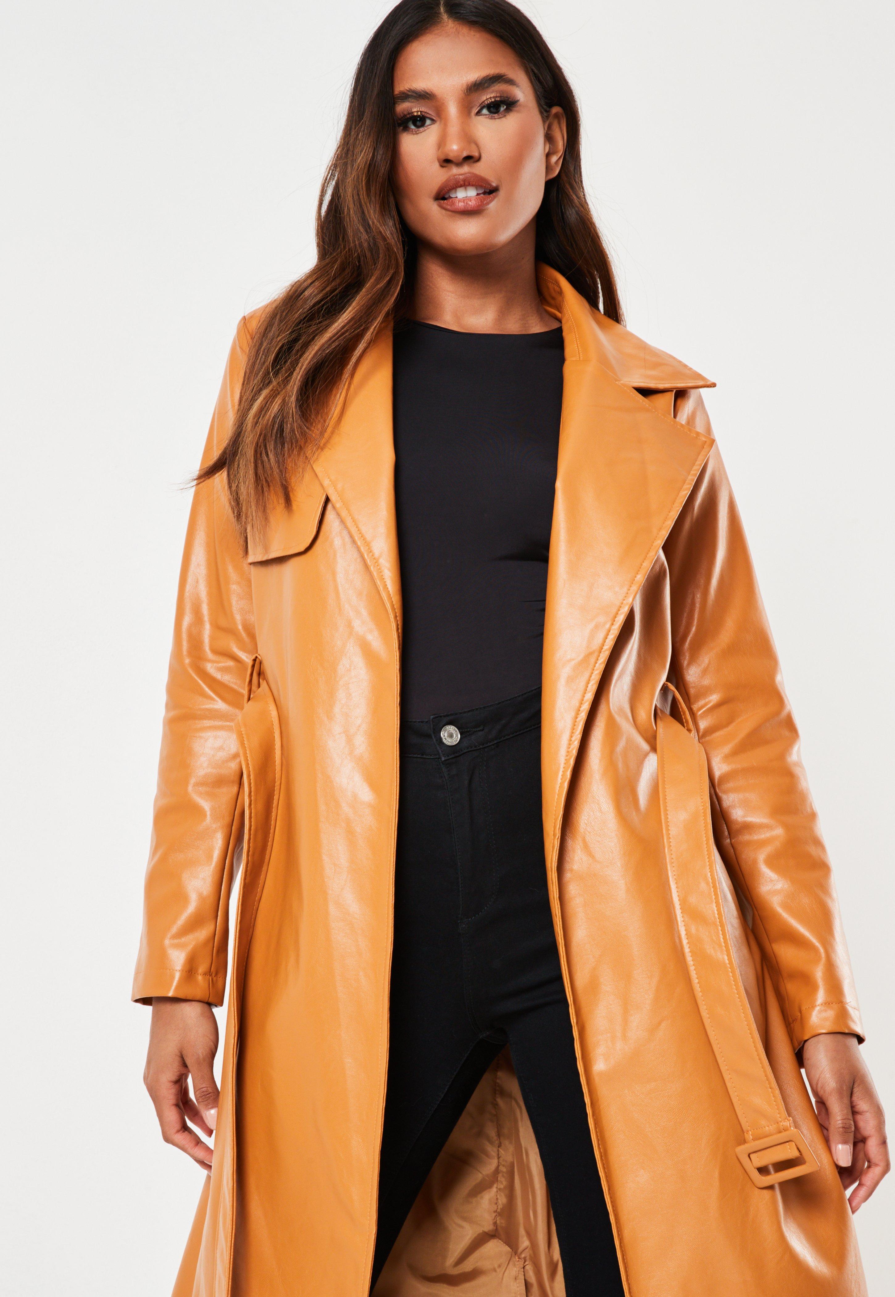 - Tan faux leather trench coat clearance
