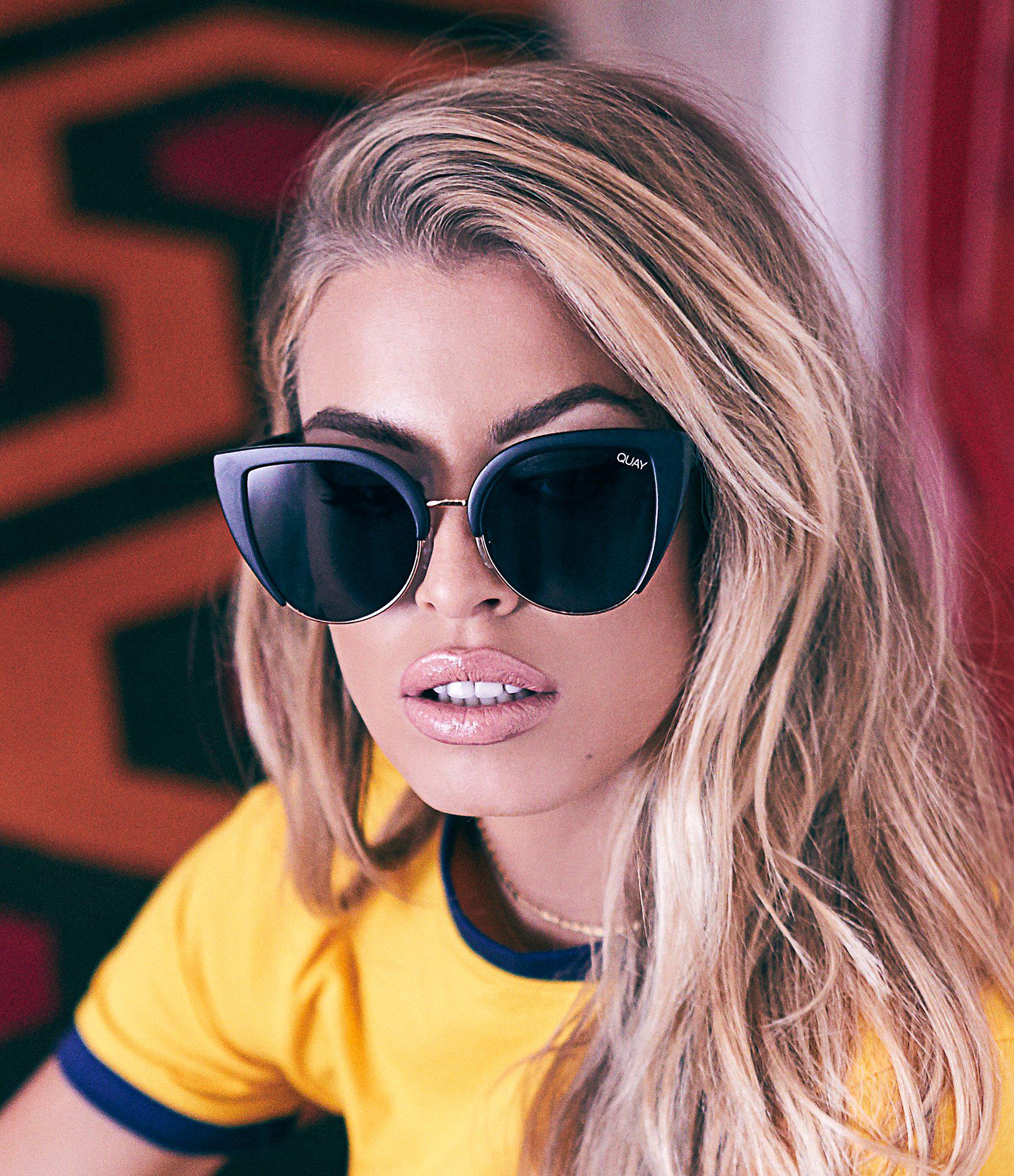 - Quay australia vinyl slim cat eye sunglasses in black free shipping