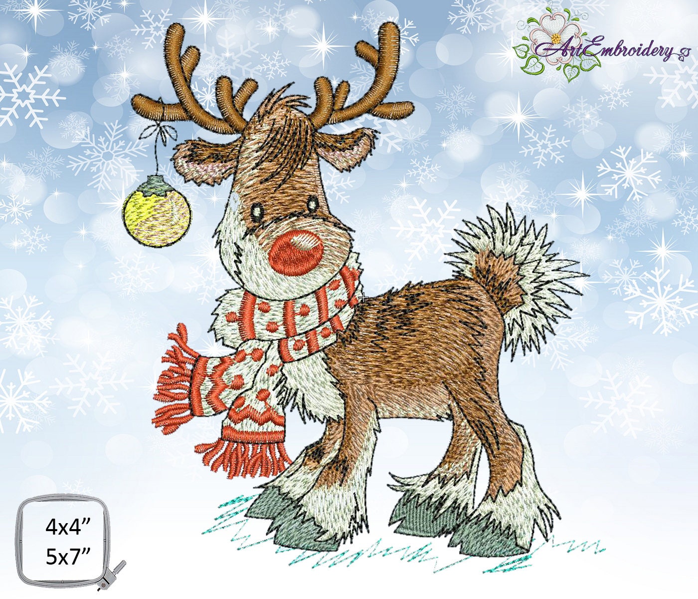 Reindeer with scarf clearance, Reindeer With Scarf Machine Embroidery clearance