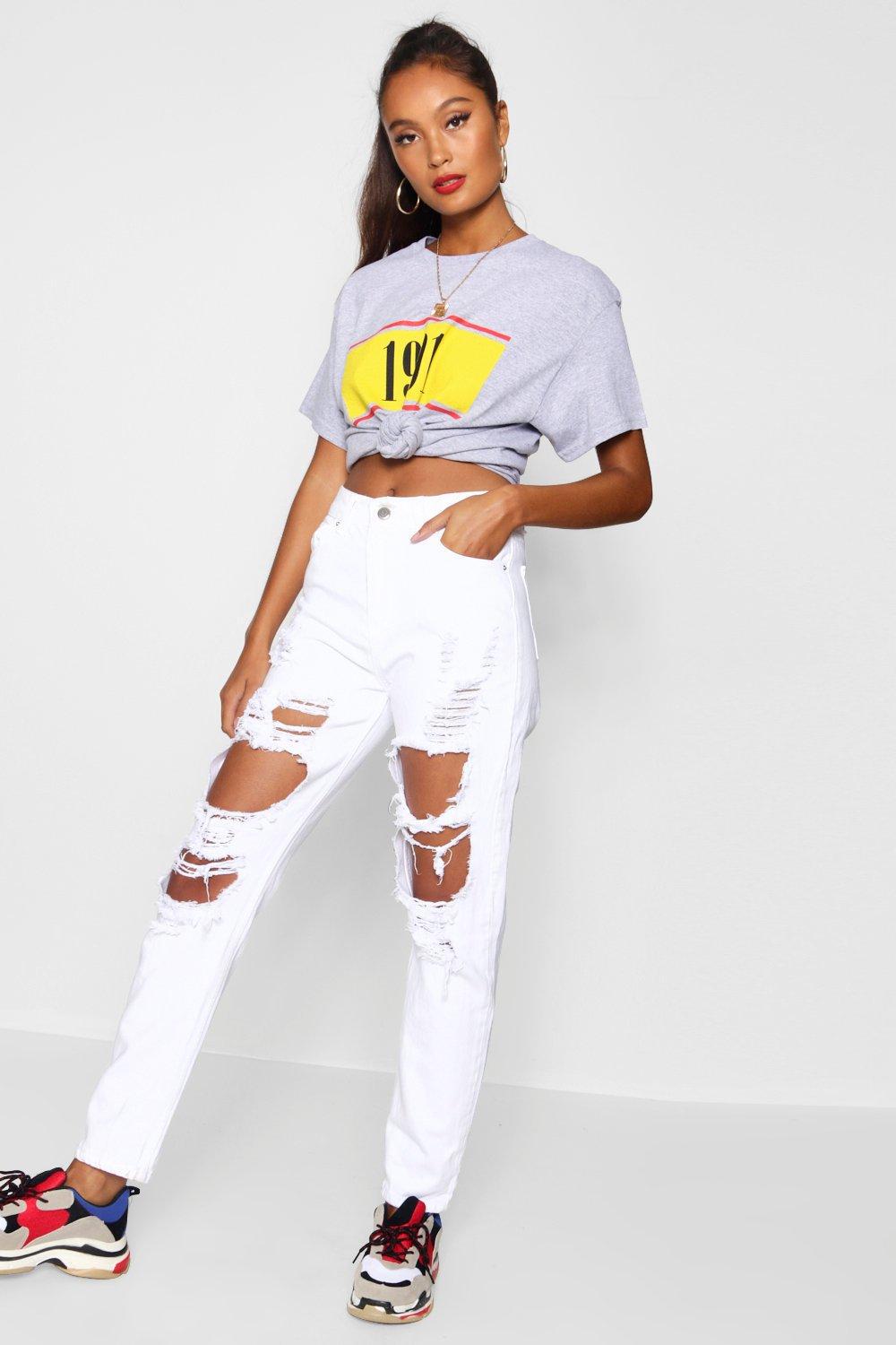 - Cheap Sophie high waisted distressed mom jeans