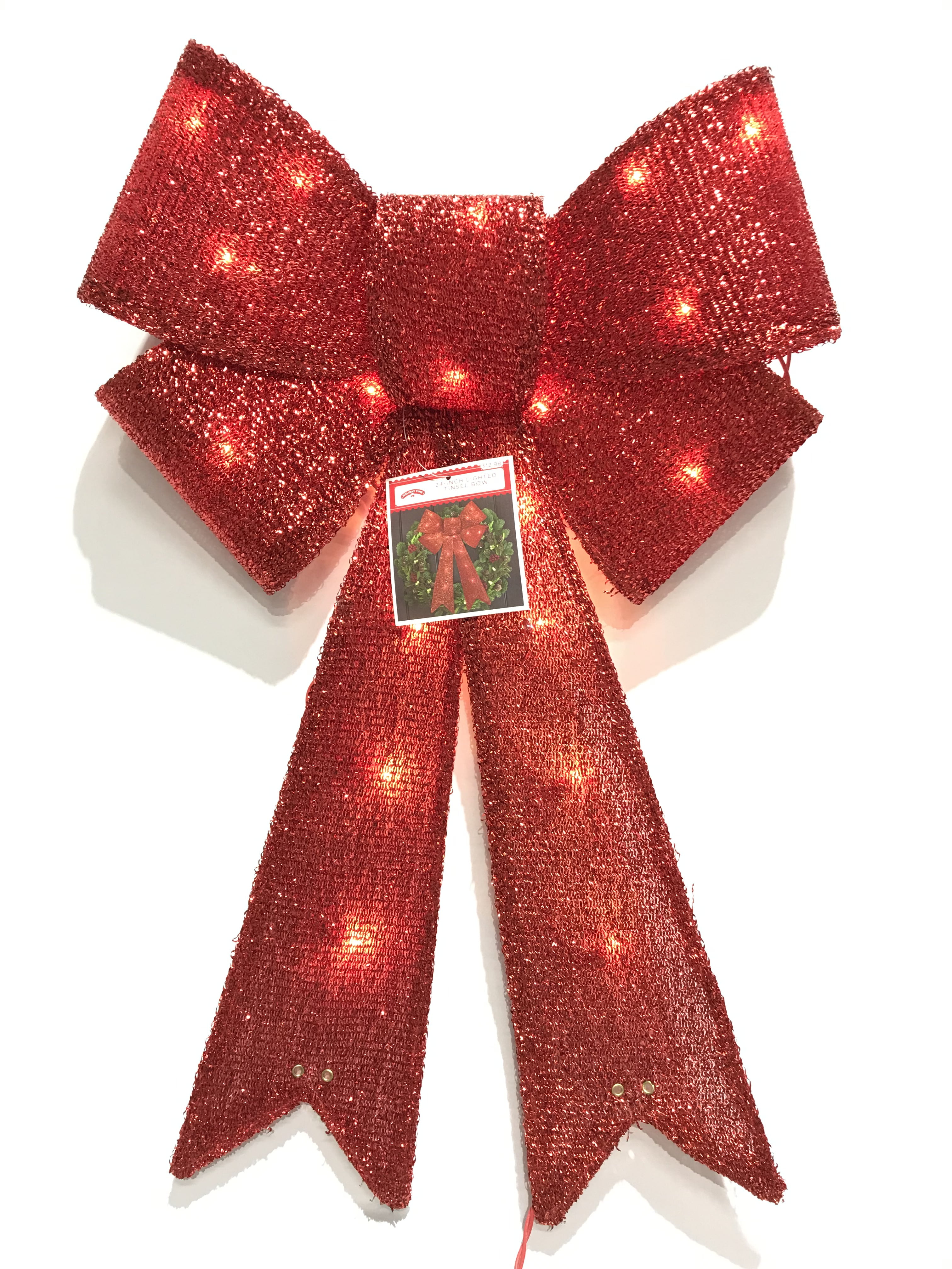 - Cheap Holiday time 24 inch red christmas outdoor tinsel bow