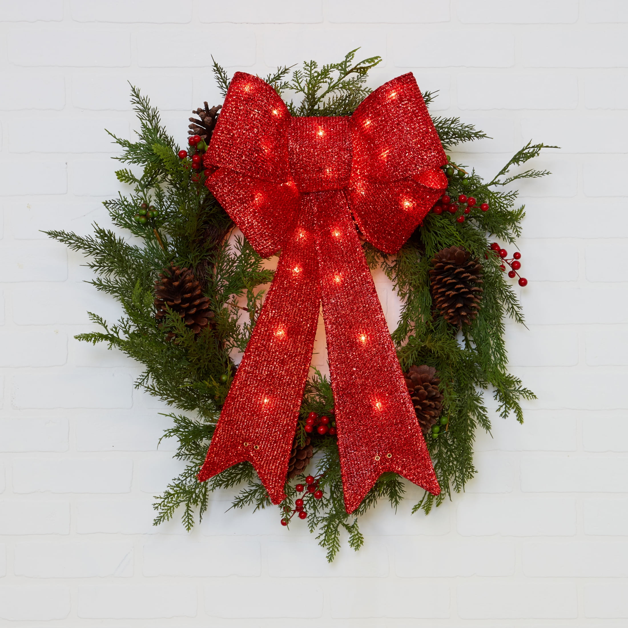 Holiday time 24 inch red christmas outdoor tinsel bow clearance, RELSY Pre-lit Christmas Bows Red Christmas Decorations - 60cm Large Christmas Door Bow/Christmas Tree Topper Christmas Door Wreaths Alternative - With 30 LED Lights : Amazon.co.uk: Home u0026 Kitchen clearance